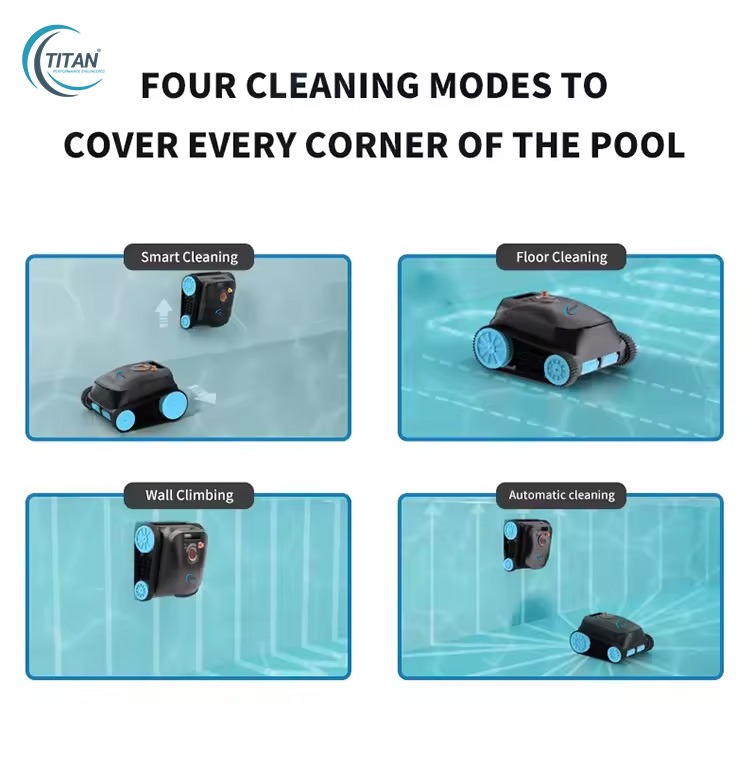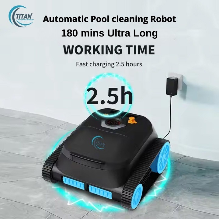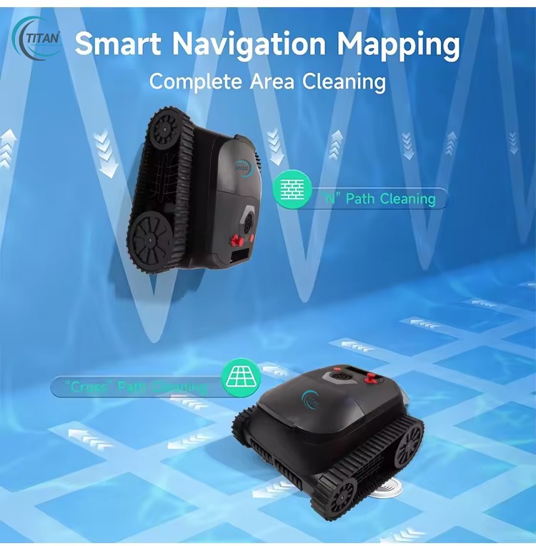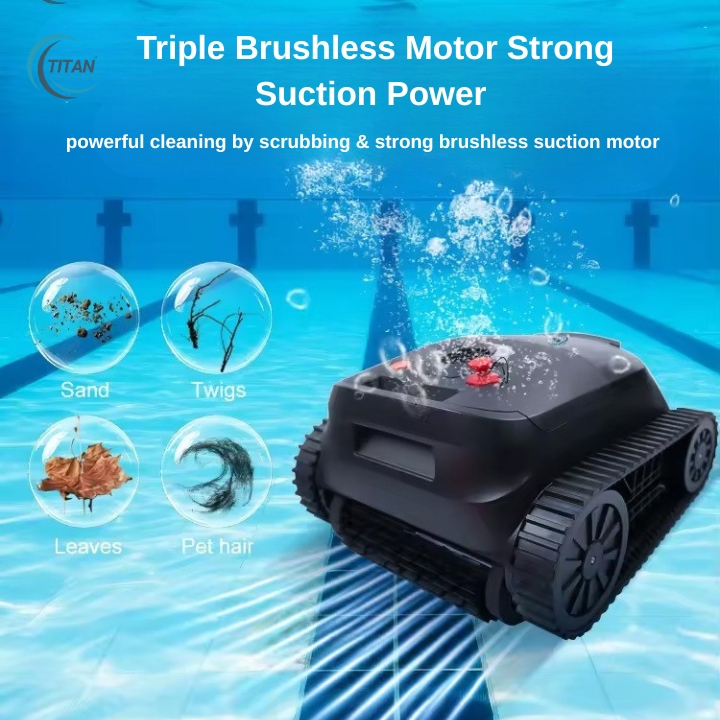 The Titan Pool Robot is engineered for powerful underwater cleaning with its advanced triple brushless motor system that delivers strong suction and deep scrubbing performance. It ensures a spotless pool floor every time. Its intelligent track-driven design provides stable movement, efficient debris pickup, and reliable operation for all pool types. Perfect for homeowners seeking hassle-free, high-performance automated pool maintenance.
